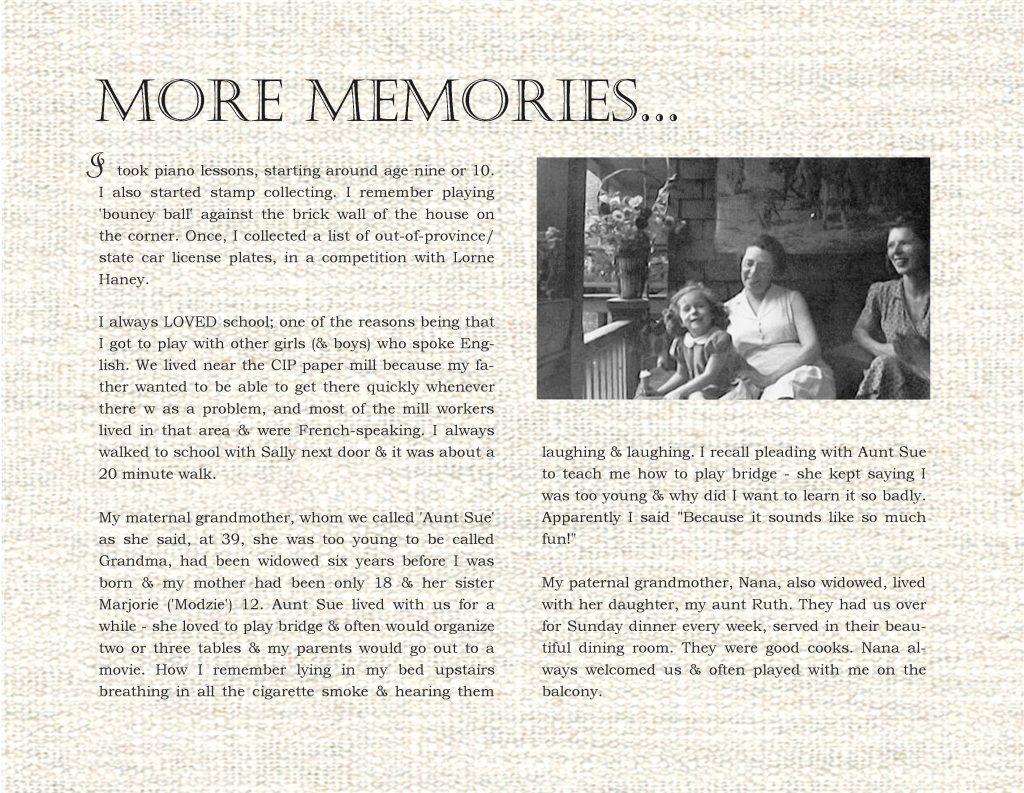 Questionnaire: It can take a few weeks to coordinate gathering all of the answers to questions and to locate and scan photos to include in your book. You can take as much time as you wish here. It is totally up to you.